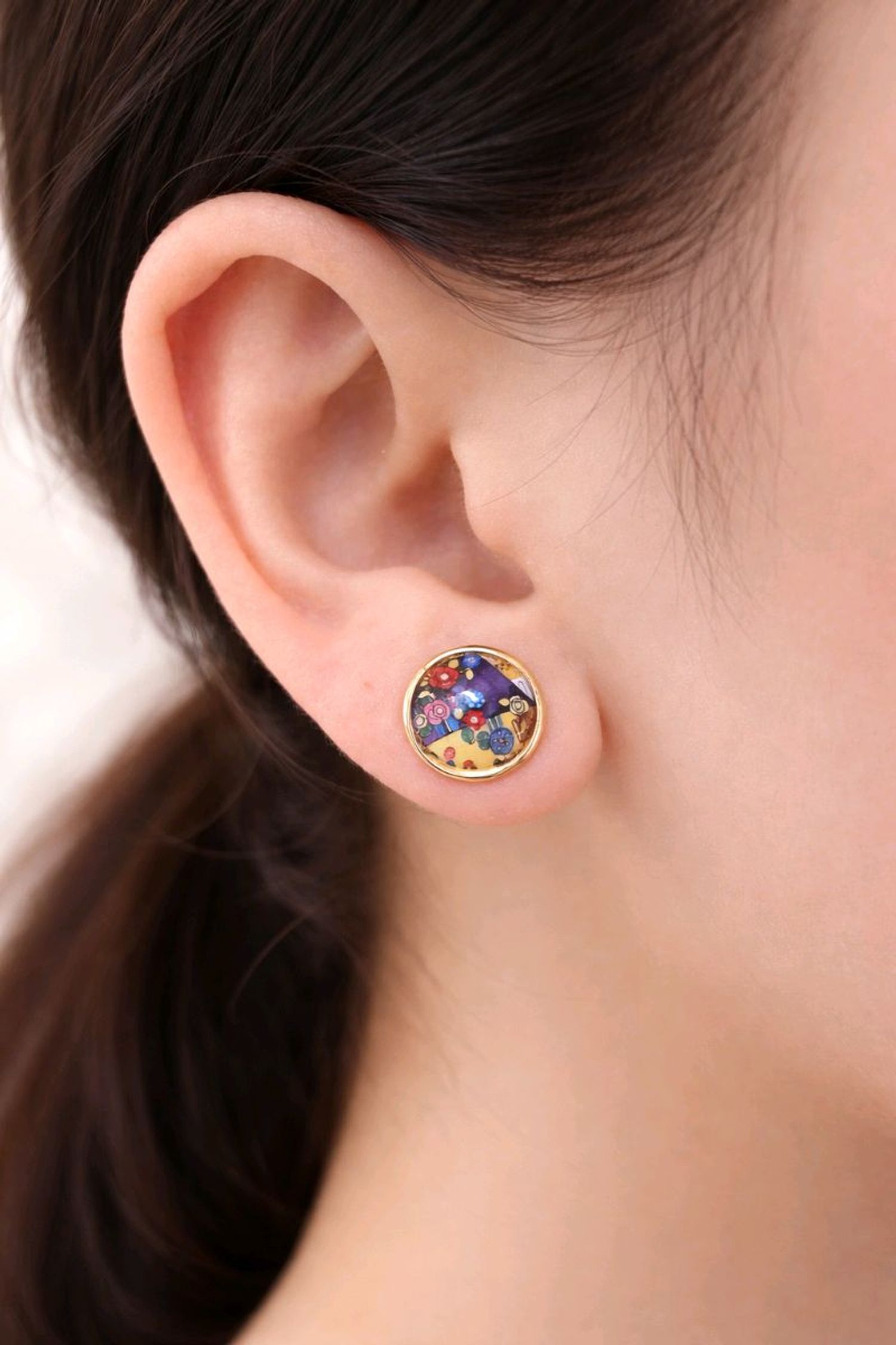 Gustav Klimt-ийн “Mäda Primavesi” уран зургийн мэдрэмжийг Mäda ээмэг нь өндөр чанарын гууль, 18 каратын алтан бүрэлт болон хэвлэмэл паалангийн хийцээр бүтээгдсэн.